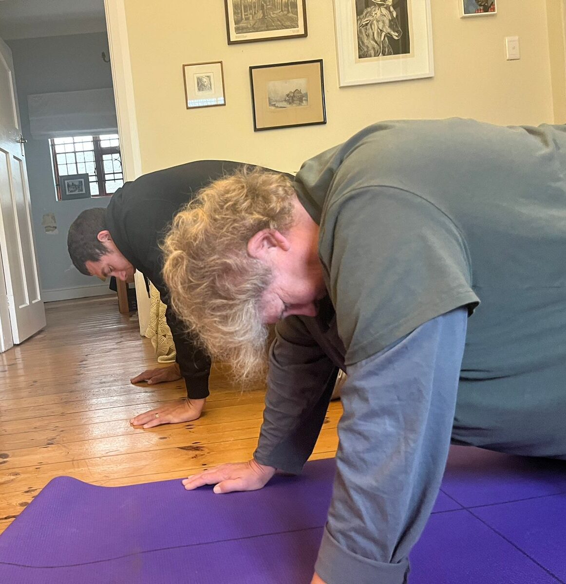 the current group meet at their houses by rote and bring their own yoga mats for a one hour session.